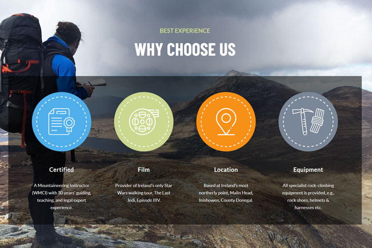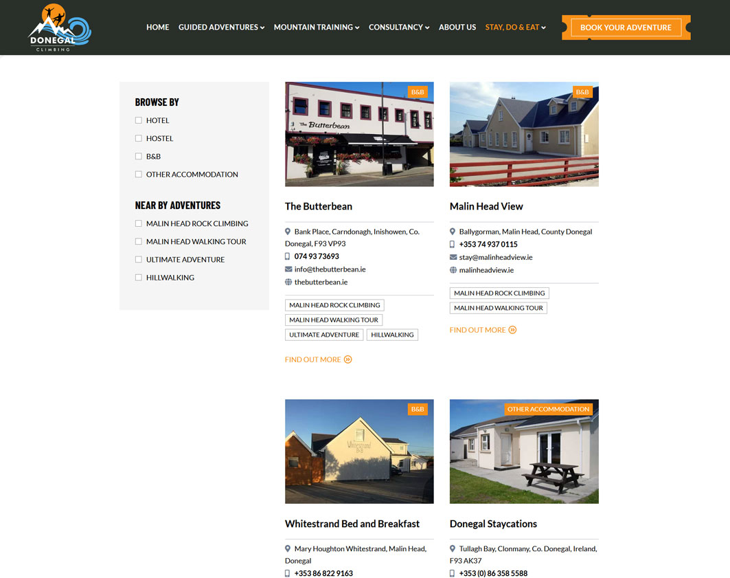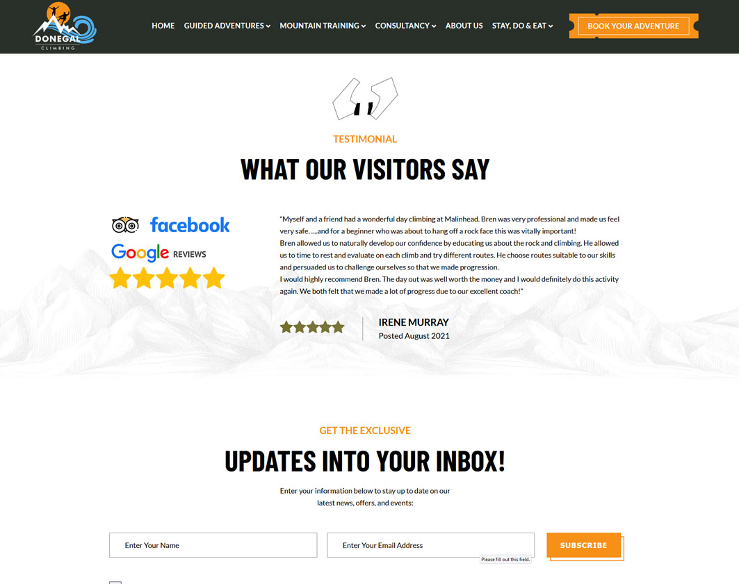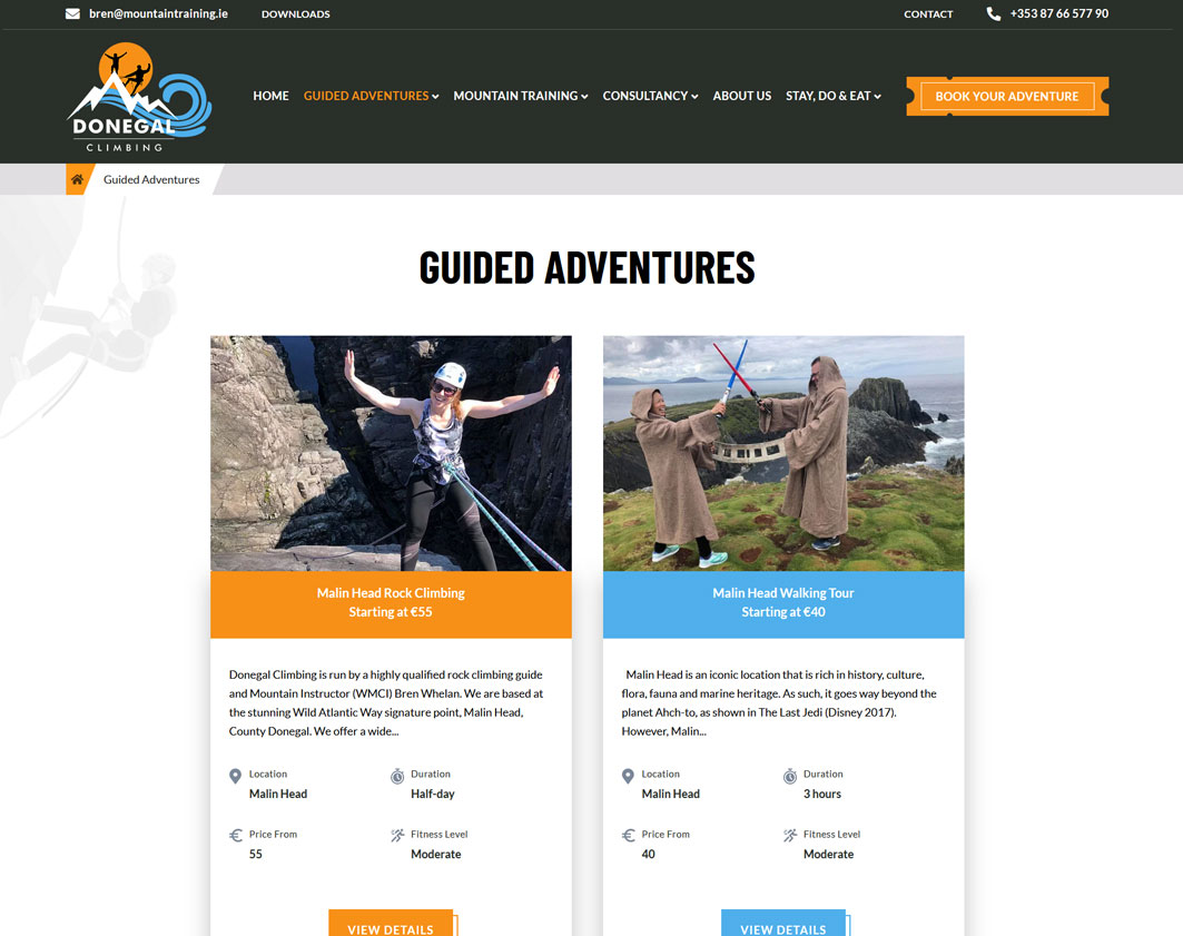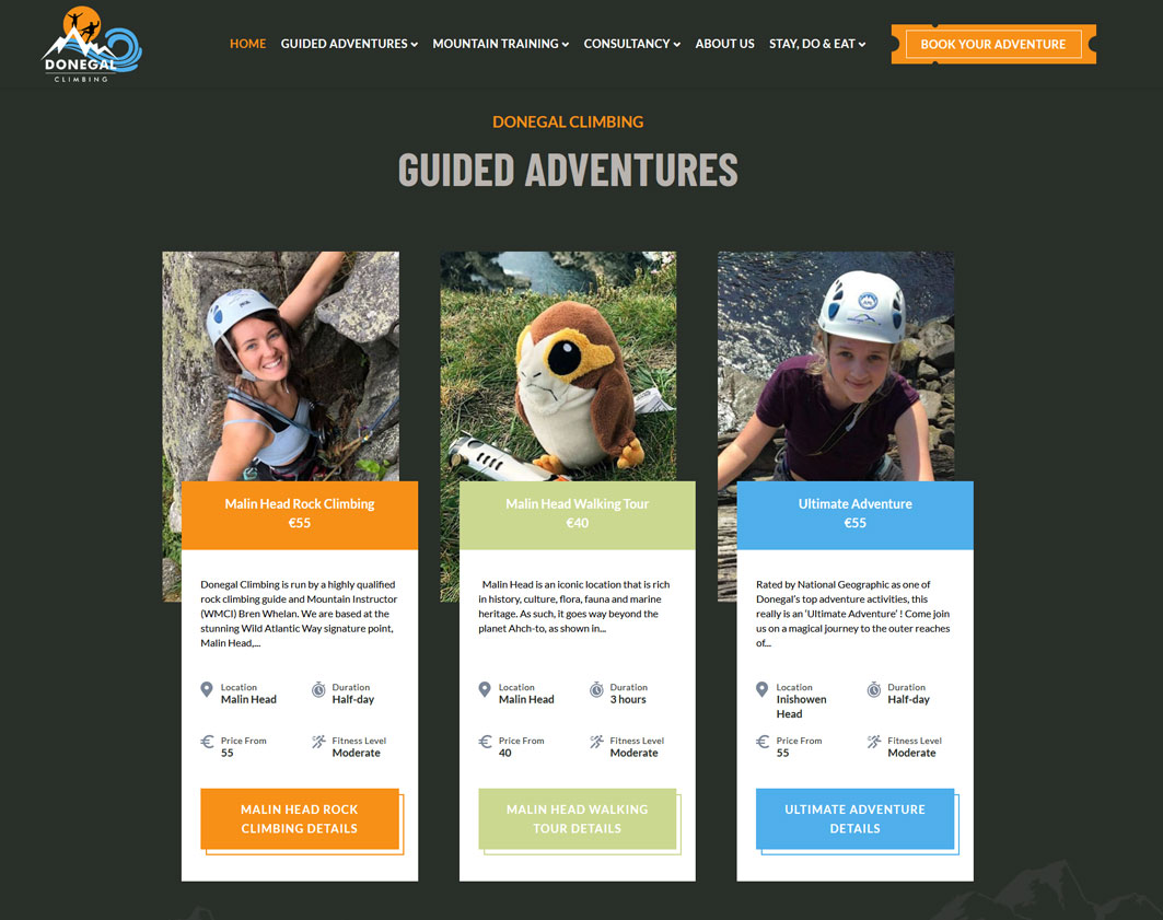 Our design team spent a good time making sure that the whole layout would encapture first-time visitors both local and international and motivate them to book adventures with Donegal Climbing.